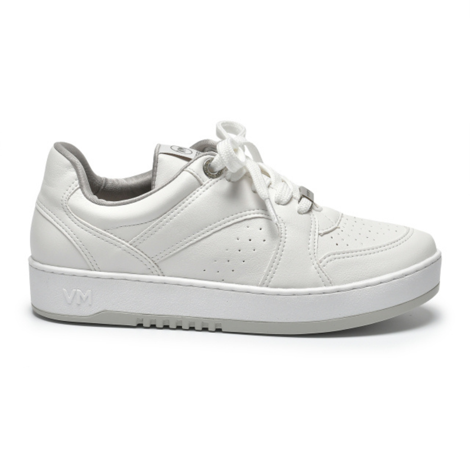 Cabedal (Parte Superior): Confeccionado em material Sintético de alta qualidade na cor Branca. Este material é prático, fácil de limpar e mantém o visual impecável por mais tempo.