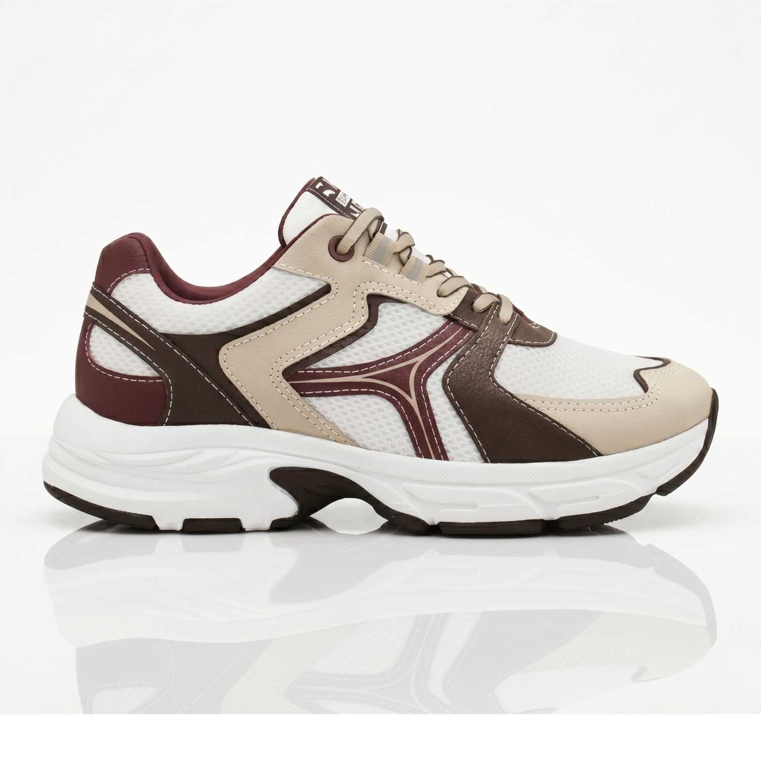 Paleta de Cores: Uma combinação harmônica entre o Bege e o Marrom Bordô, finalizada com um solado em cor Marrom Café, que traz um ar rústico e chique ao calçado.